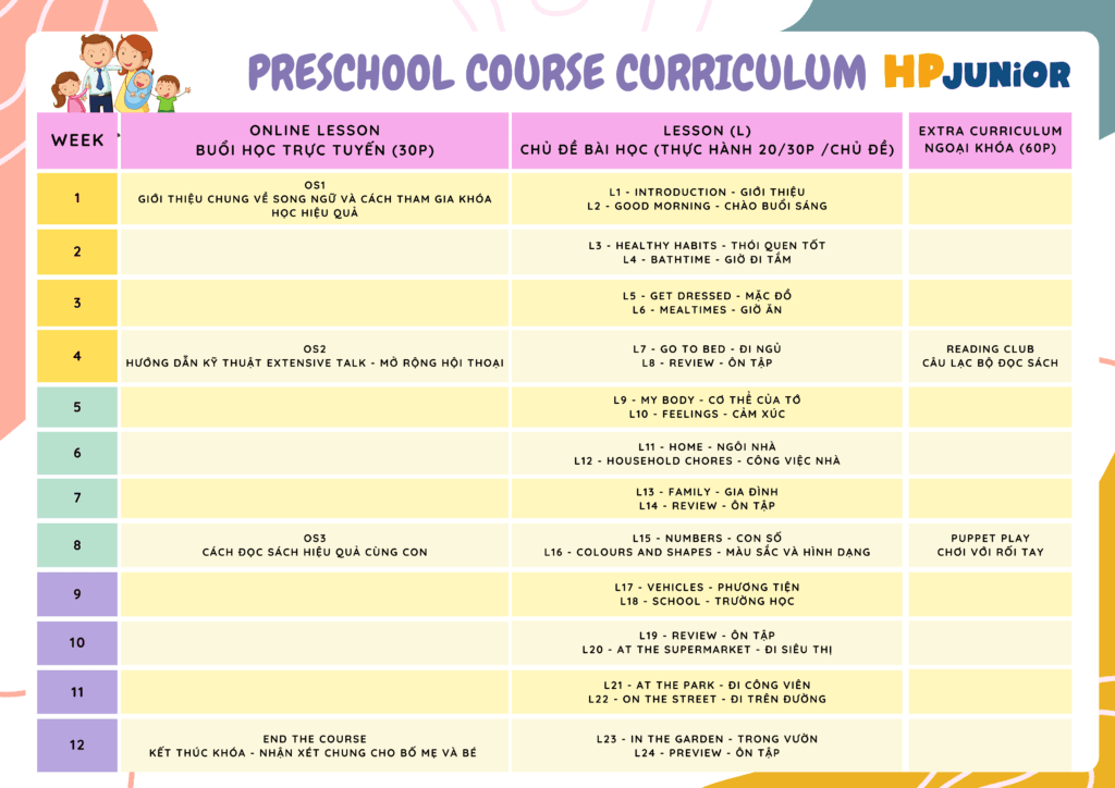 MỤC TIÊU SAU KHI HOÀN THÀNH KHOÁ PRESCHOOL